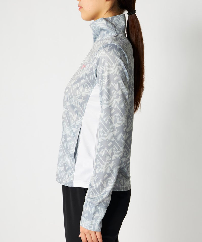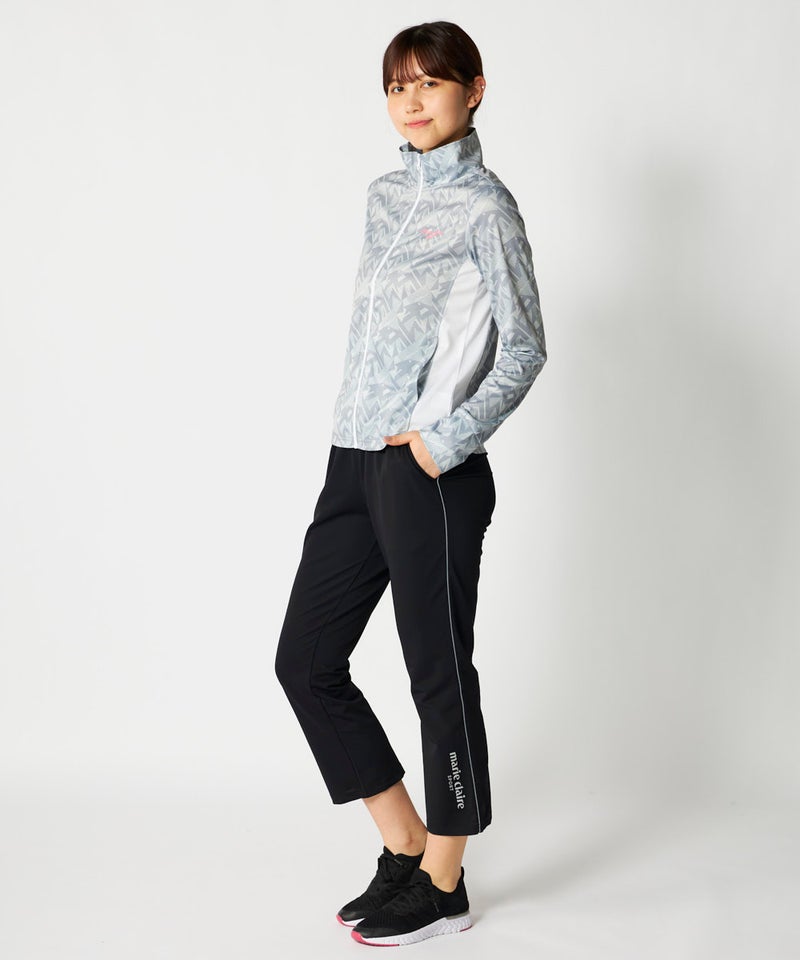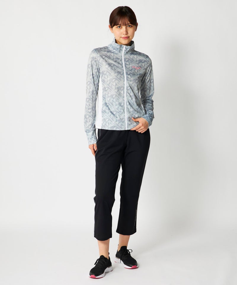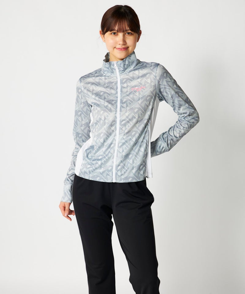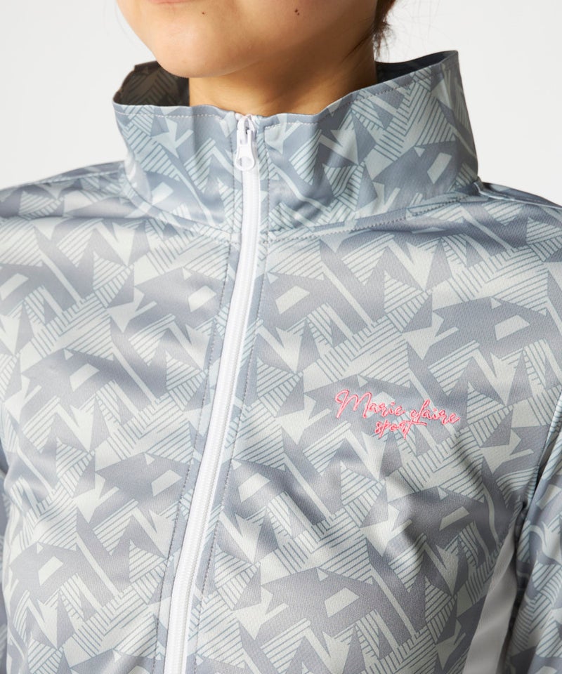 スポーツはもちろんカジュアルなシーンに活躍してくれる明るいカラーの幾何柄ジャケット。脇部分の配色切替 えがスッキリした縦ラインでスタイルアップ効果が期待できサッと羽織って暑い夏のUV対策はもちろん冷房対 策もオシャレに応援!UV遮蔽率90%以上