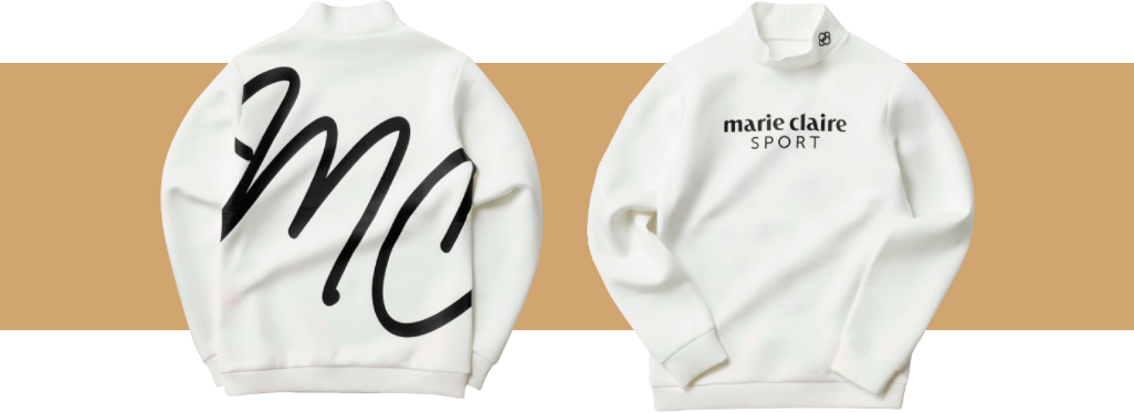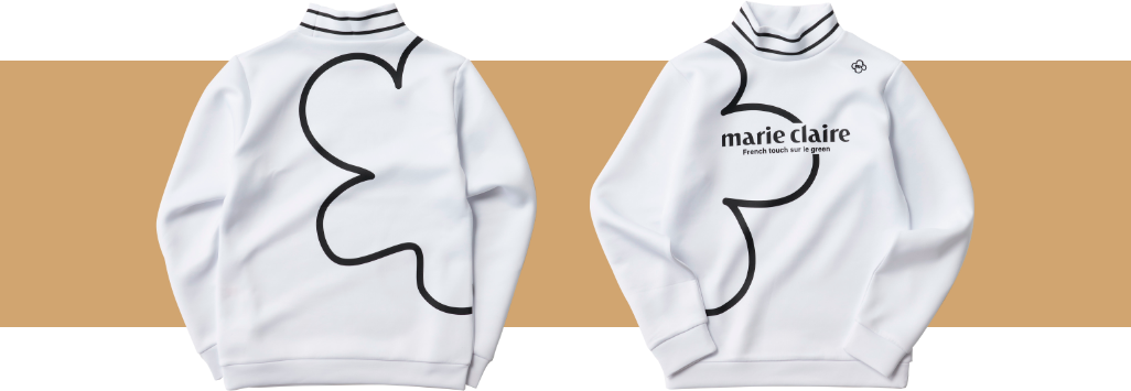 人気ゴルフインフルエンサーの森田えりか氏との コラボアイテムがついに発売! 森田氏が、デザインからこだわって作られた、モックネックシャツが2型完成しました。 「ゴルフも日常も、もっと自由に楽しんで頂けるデザイン」をコンセプトに marie claireの上品さと遊び心を込めてデザインしていただきました。